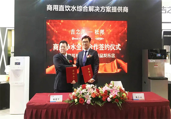 On June 4, 2019, at the 12th Shanghai International Water Treatment Exhibition, Qingdao Gemii Commercial Equipment Co., Ltd. and DuPont Water Treatment held a comprehensive signing ceremony for commercial water purification and a new product launch conference for cloud business series direct drinking machines. Achieve a comprehensive partnership and sign a cooperation agreement.