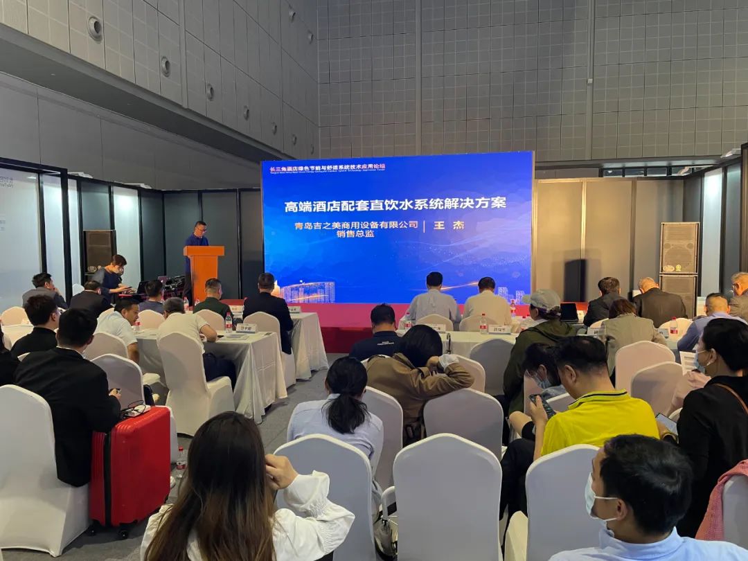 吉之美发言主题是高端酒店商用直饮水应用解决方案,由吉之美上海大区销售总监王杰进行主题讲解。从直饮水设备的绿色节能技术引入,吉之美给出了高端酒店一站式直饮水解决方案的完整思路,方案不仅产品配置合理,完美契合高端酒店的应用场景,而且推动整个酒店饮水生态链的低碳发展,践行零碳目标。