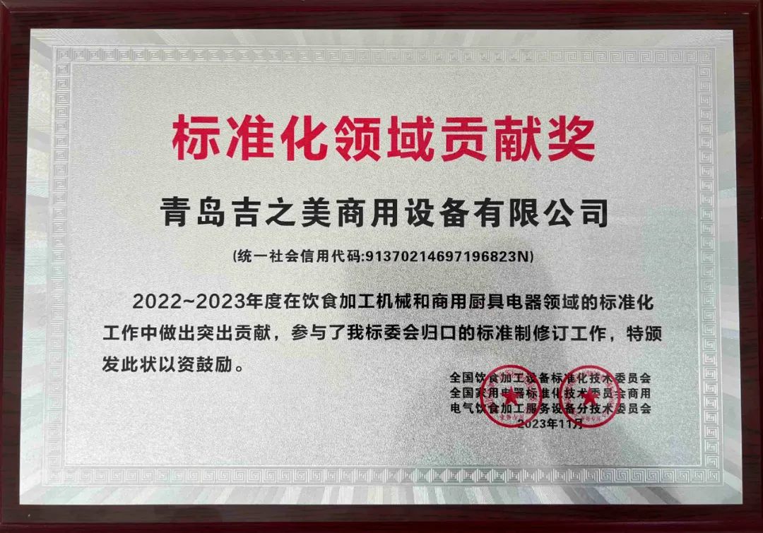 热烈祝贺 | 青岛吉之美荣获“标准化领域贡献奖”!
